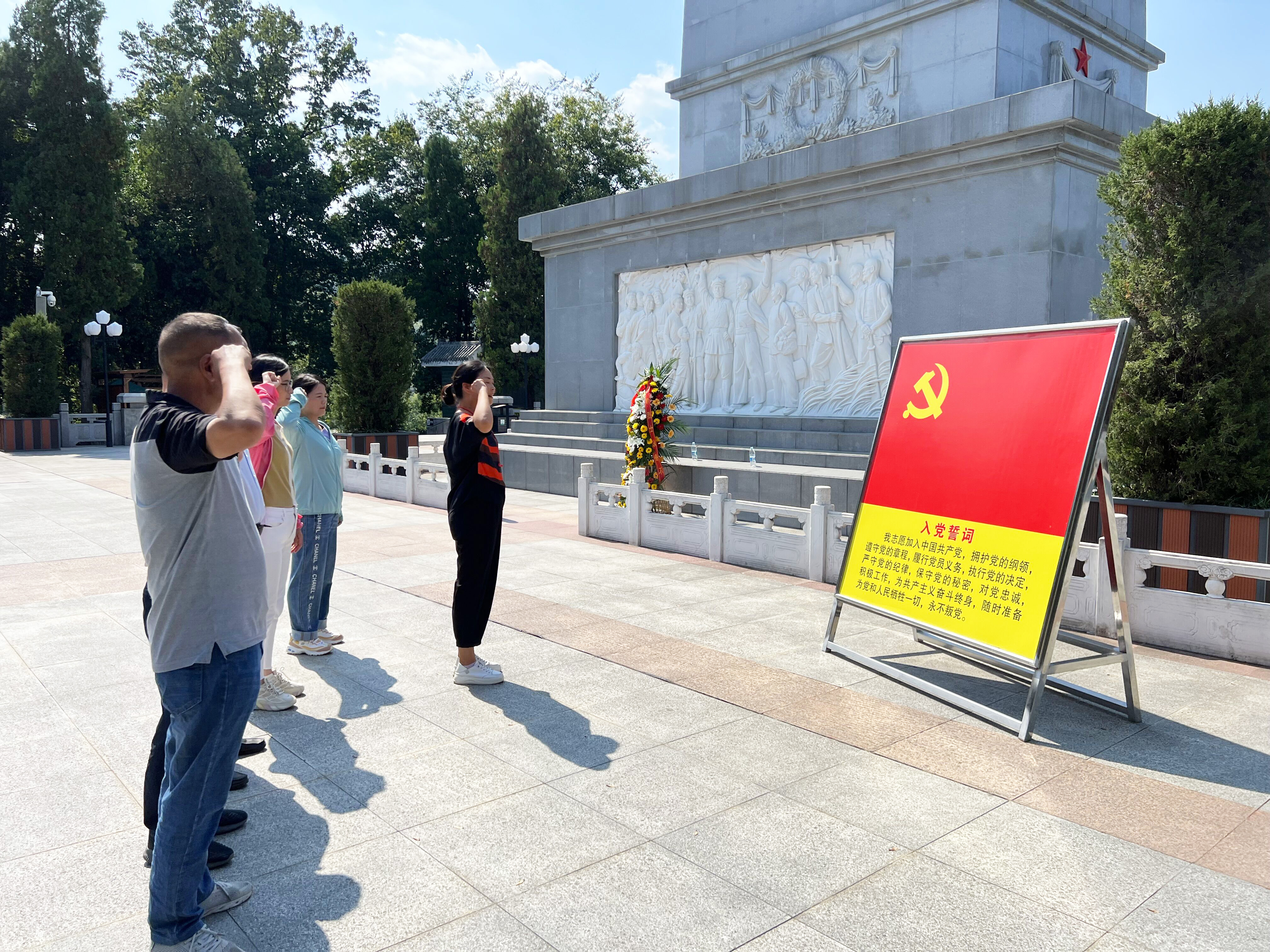 在金寨縣紅軍廣場(chǎng)革命烈士紀(jì)念塔下,參與活動(dòng)的全體黨員同志向革命先烈敬獻(xiàn)了花籃,隨后莊重地舉起右手,重溫了入黨誓詞,進(jìn)一步堅(jiān)定了共產(chǎn)黨人的理想信念。