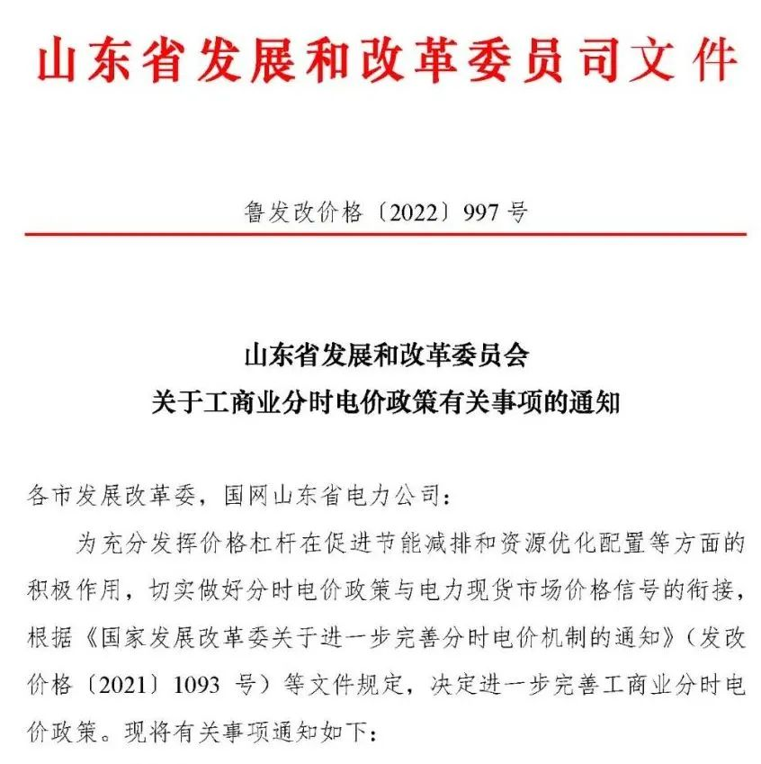 11月29日,山東省發(fā)改委發(fā)布《山東省發(fā)展和改革委員會(huì)關(guān)于工商業(yè)分時(shí)電價(jià)政策有關(guān)事項(xiàng)的通知》。