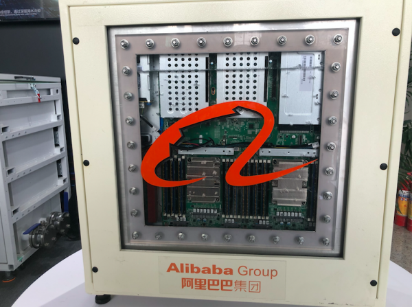 阿里云在IDCC大會現(xiàn)場展示的浸沒式液冷模塊