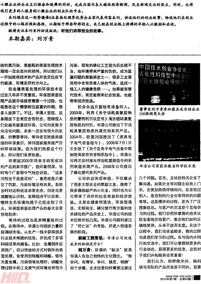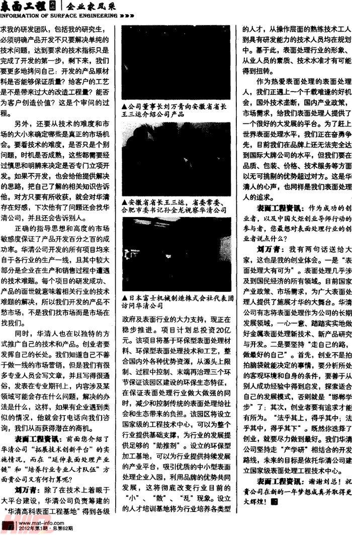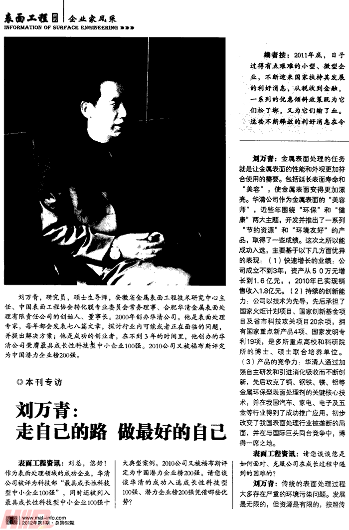 我公司董事長劉萬青接受《表面工程資訊》采訪(一)