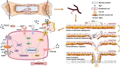 圖3 鎂合金降解產(chǎn)生的鎂離子促進(jìn)骨愈合過程中血管再生的示意圖