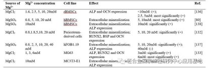 表1 不同濃度鎂離子對不同成骨相關(guān)細(xì)胞成骨分化能力的影響