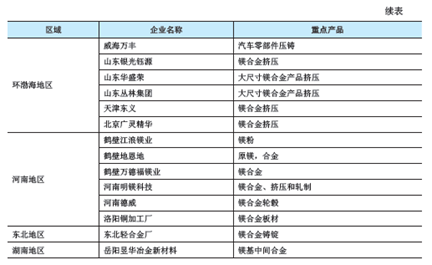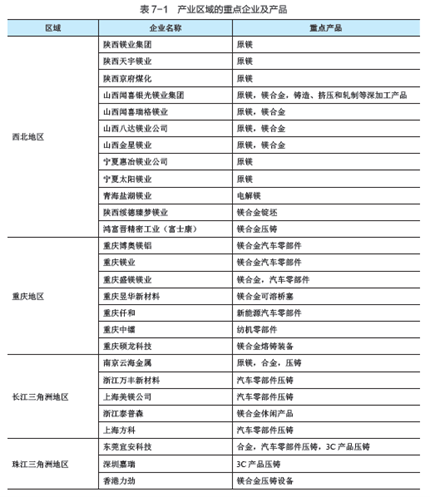 河南地區(qū)依托河南省雄厚的輕金屬研發(fā)和應(yīng)用基礎(chǔ),擁有國(guó)家鎂及鎂合金產(chǎn)品質(zhì)檢中心和中鋁鄭州輕金屬研究院,成立了河南鎂業(yè)集團(tuán)、萬德芙、明鎂科技、地恩地等代表性企業(yè),主要以鎂粉以及部分鑄造和變形深加工為主。