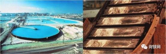 圖1。陶氏在德克薩斯州Freeport的前工廠,用于從海水中分離鎂的水池(左)和冷卻鎂犧牲陽極(右)。