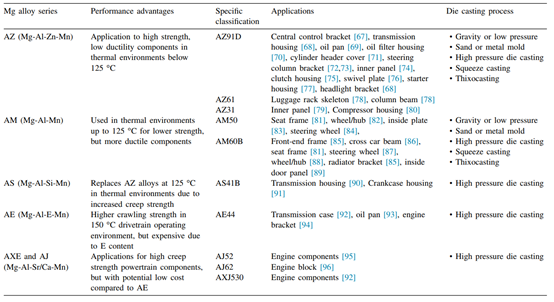 然而目前,由于汽車鎂合金零件的批量生產(chǎn)仍面臨限制,加之工程師經(jīng)驗(yàn)不足,尚未形成完善的汽車鎂合金零部件研發(fā)體系,難以實(shí)時(shí)跟蹤相關(guān)文獻(xiàn)等。因此目前對于鎂合金在汽車領(lǐng)域的綜述文章較為稀缺,尤其是在詳細(xì)介紹鎂合金零部件全流程開發(fā)過程和性能要求方面的內(nèi)容。因此有必要對鎂合金在汽車零部件中的應(yīng)用進(jìn)行綜述,這將為整車廠的鎂合金零部件開發(fā)提供參考和借鑒。