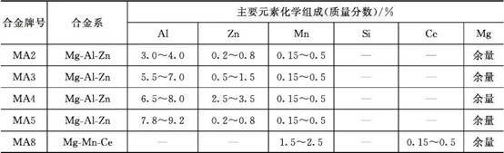 表3 國(guó)產(chǎn)鎂合金的牌號(hào)和主要成分