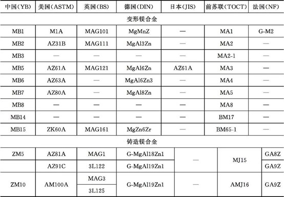 鎂合金的牌號(hào)分類與性能對(duì)比
