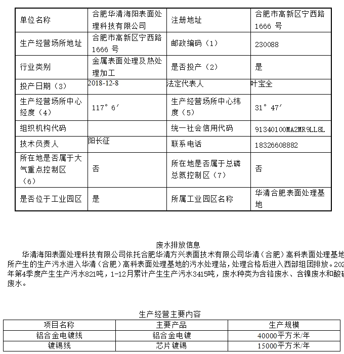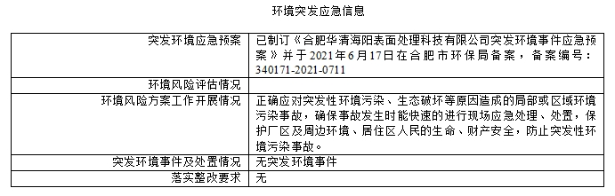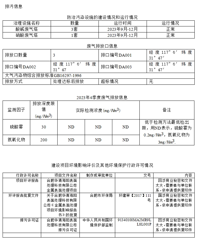合肥華清海陽表面處理科技有限公司2023年第4季度信息公開表