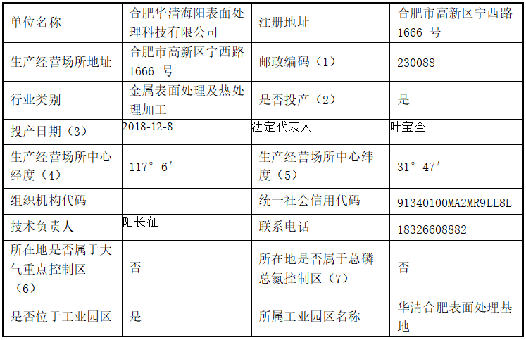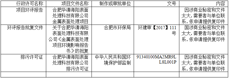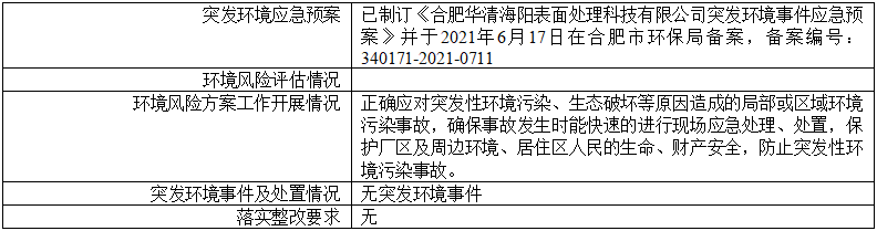 合肥華清海陽表面處理科技有限公司2024年第3季度信息公開表